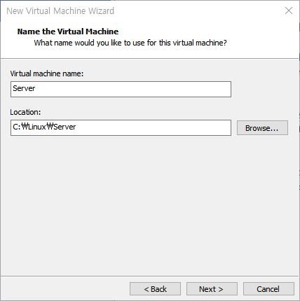 2. 컴퓨터에 Server폴더를 하나 생성하고 VMware에서 'Server'라는 새로운 가상머신을 하나 추가해준다.
