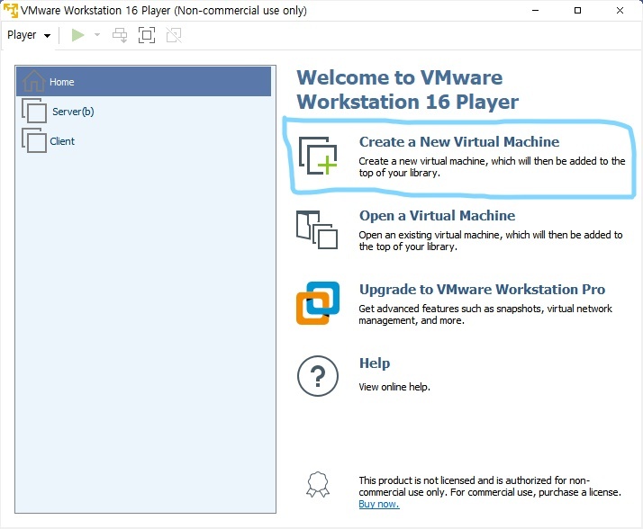 2. 컴퓨터에 Server폴더를 하나 생성하고 VMware에서 'Server'라는 새로운 가상머신을 하나 추가해준다.