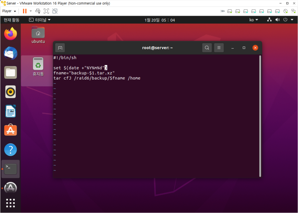 3. /root 위치에 myBackup.sh 파일을 생성한다.