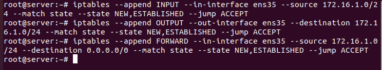 다음으로 ens35로 모든 패킷이 통과할 수 있도록 다음과 같이 설정한다.