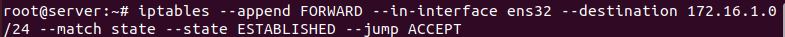 iptables --table nat --append PREROUTING --in-interface ens32 --jump DNAT --proto tcp --dport 80 --to-destination 172.16.1.20