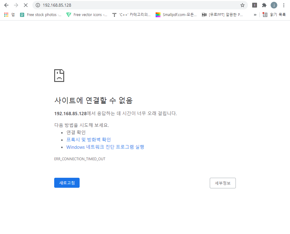 첫 번째 ) server(b)에 웹 서버가 구축되어 있는 채로 방화벽 컴퓨터를 설치했던 것이 문제였다. 방화벽 컴퓨터 설치 후 웹 서버로 접속하려다 보니 자꾸 웹 서버가 기존의 IP주소(방화벽 서버 설치 전 server(b)의 IP주소)로 접속하려고 하여 아예 모두 지우고 다시 설치한 후 다시 실습을 진행하였다.