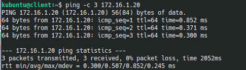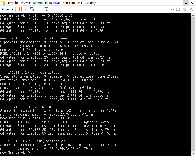 마찬가지로 Client도 재부팅해주고 server(b)로 ping을 보내보자.
