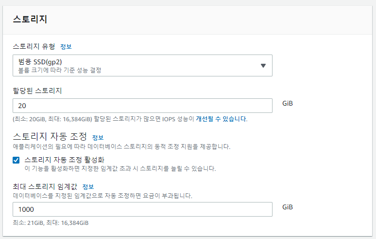 - 범용(SSD) 데이터베이스 스토리지 20GB