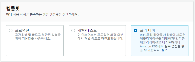 3. 탬플릿은 원하는 옵션으로 선택하면 되는데, 프리티어의 경우 1년 동안 아래의 서비스를 무료로 이용할 수 있습니다.
