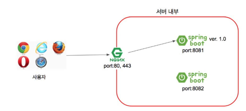 무중단 배포의 방식에는 AWS Blue-Green을 이용하는 방법, 도커를 사용하는 방법 등 다양하지만 이번 포스트에서는 nginx를 활용하여 무중단 배포를 할 것이다.