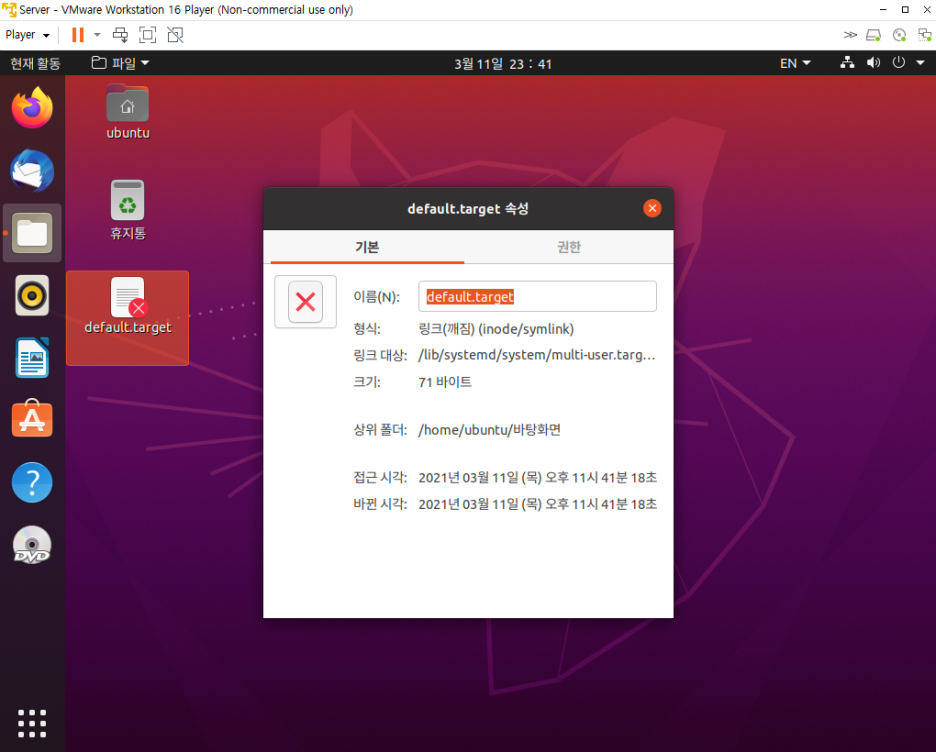 ▶ 설정된 런레벨 확인: ls -l /lib/systemd/system/default.target