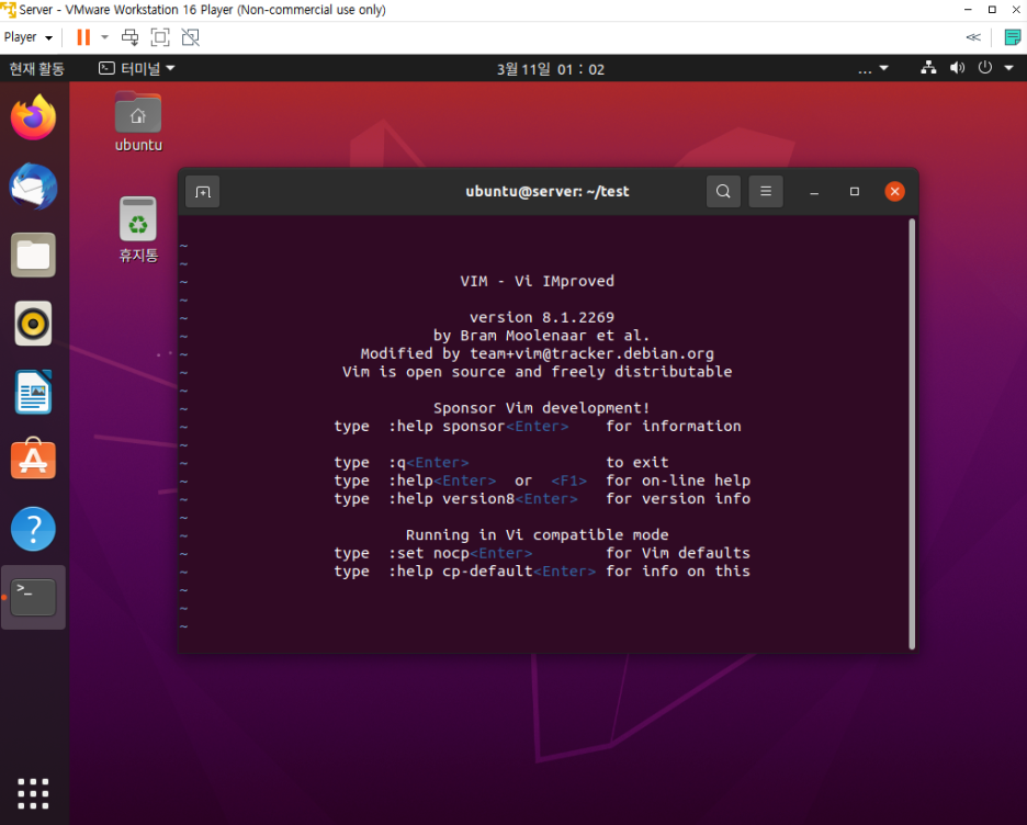 명령어 실습 이후 vi 에디터를 사용하여 간단한 파이썬 코드를 작성해보았다.