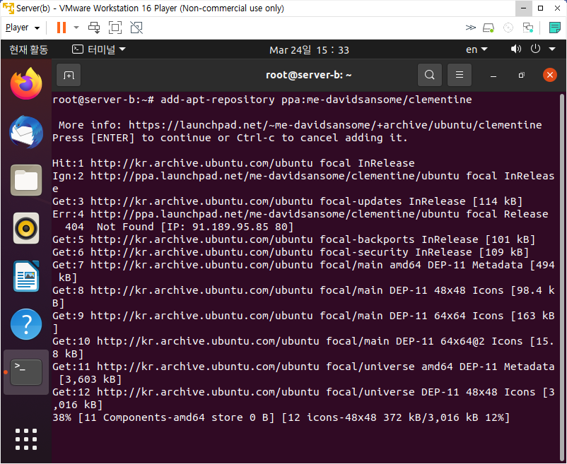 이후 apt update를 수행하고,