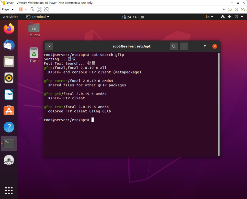 그 후 apt search gftp 명령어를 통해 gftp 및 이와 관련된 패키지들을 검색해본다.