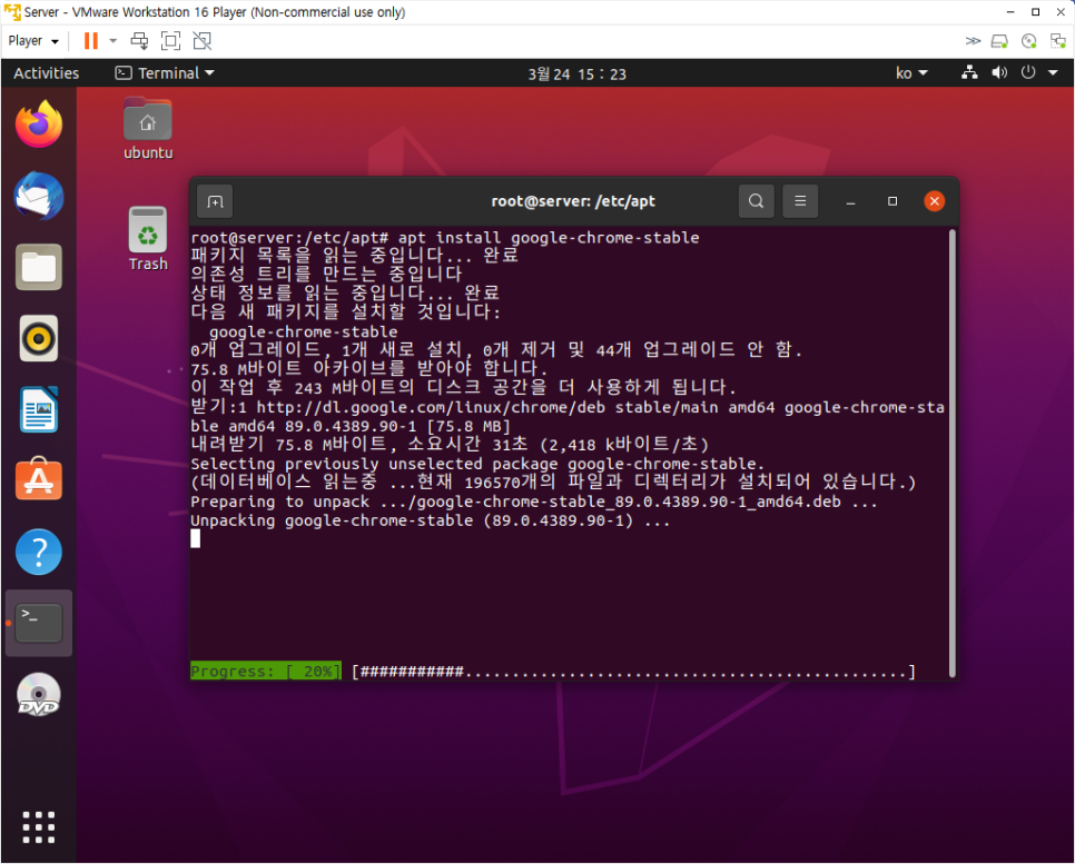 다음으로 apt update를 수행한 후 google-chrome-stable을 설치한다.