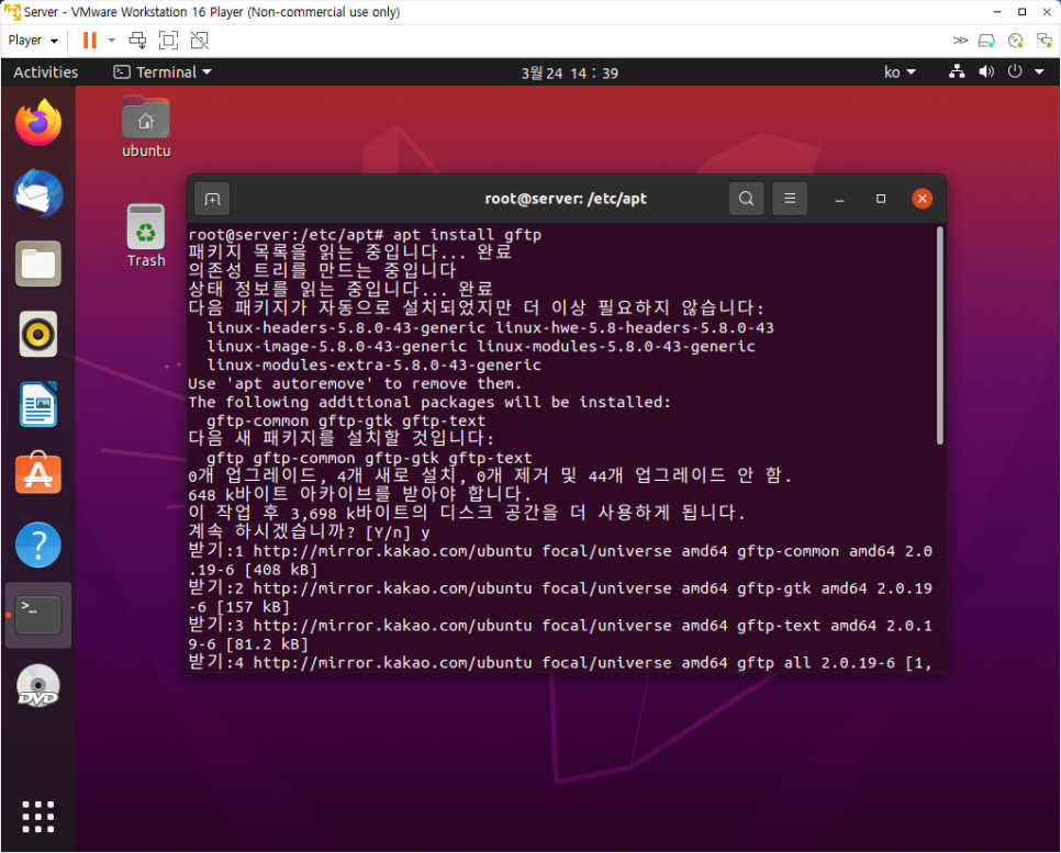 다음으로 apt install gftp 명령어를 통해 gftp 클라이언트를 설치한다.